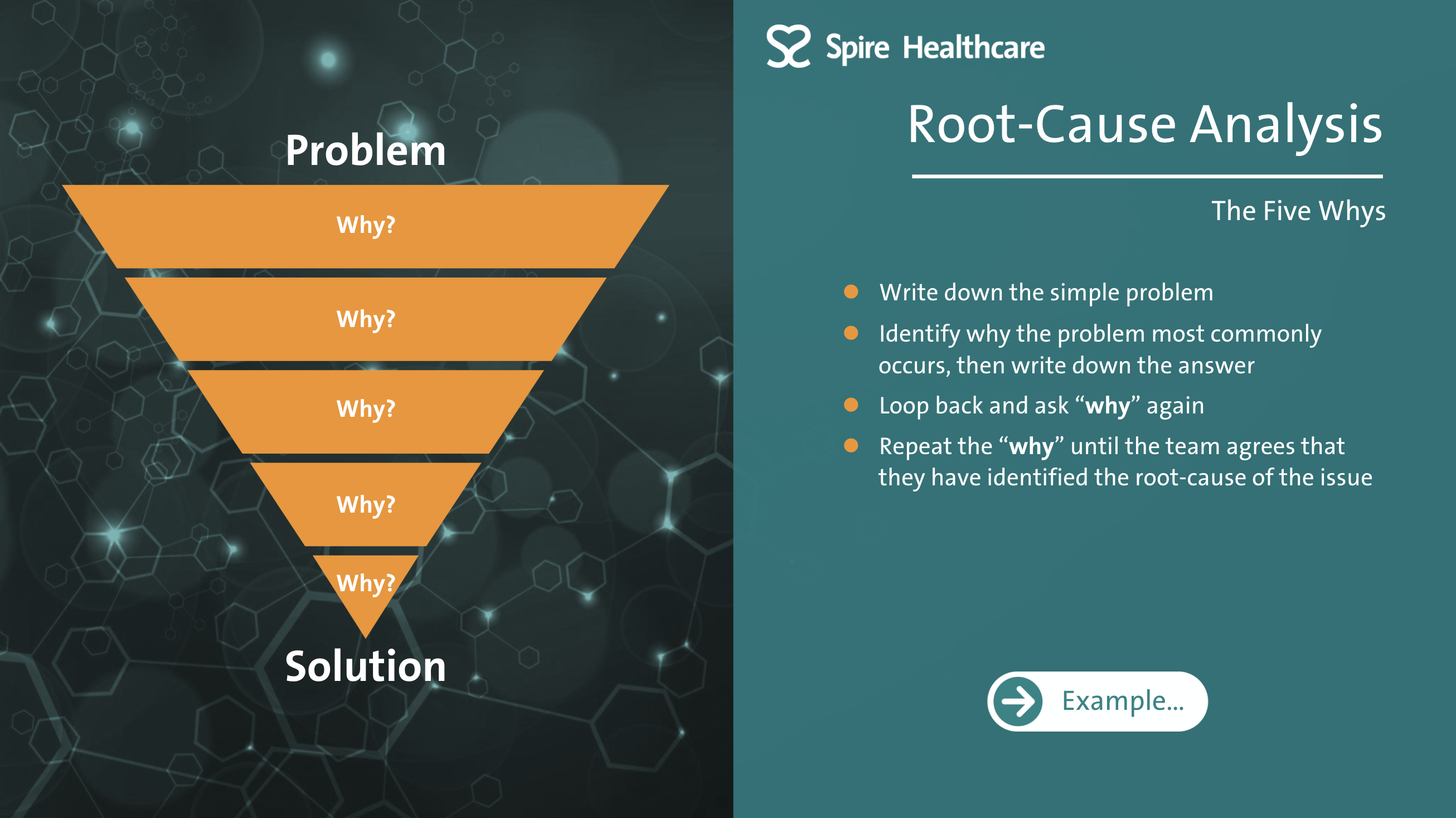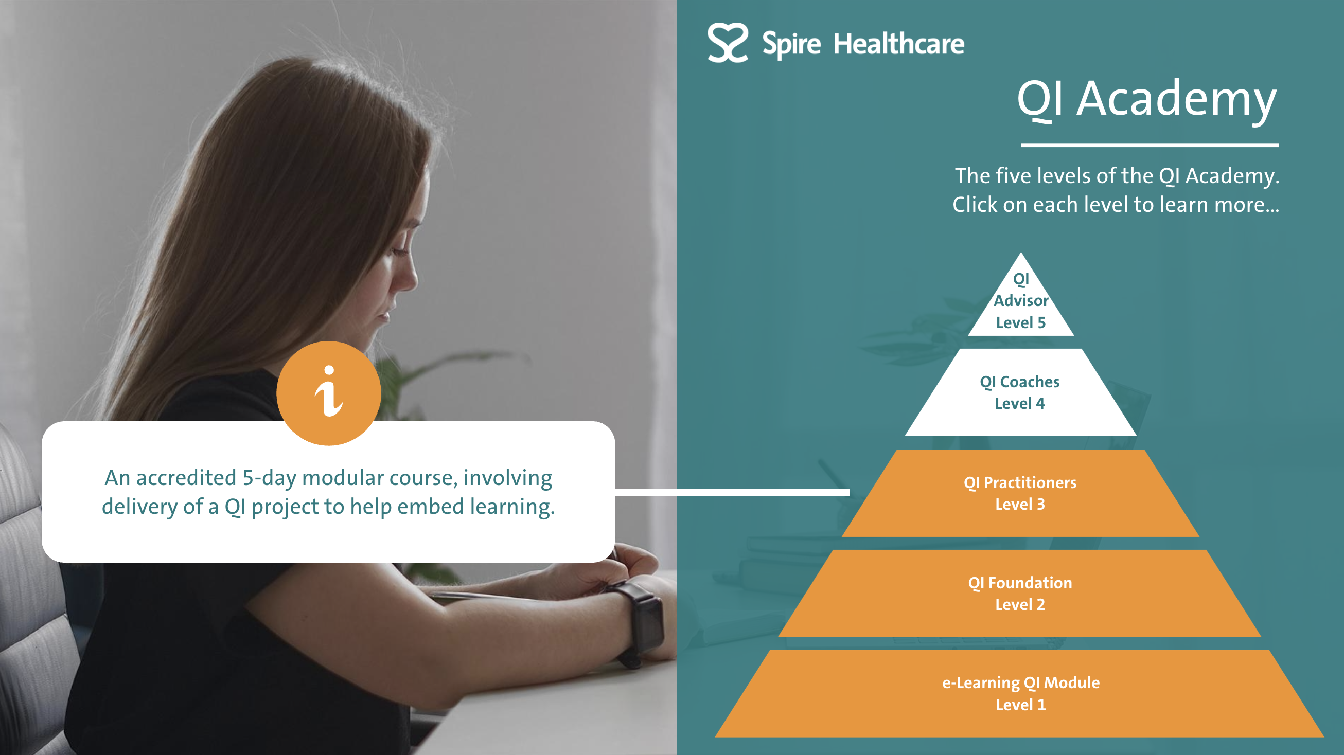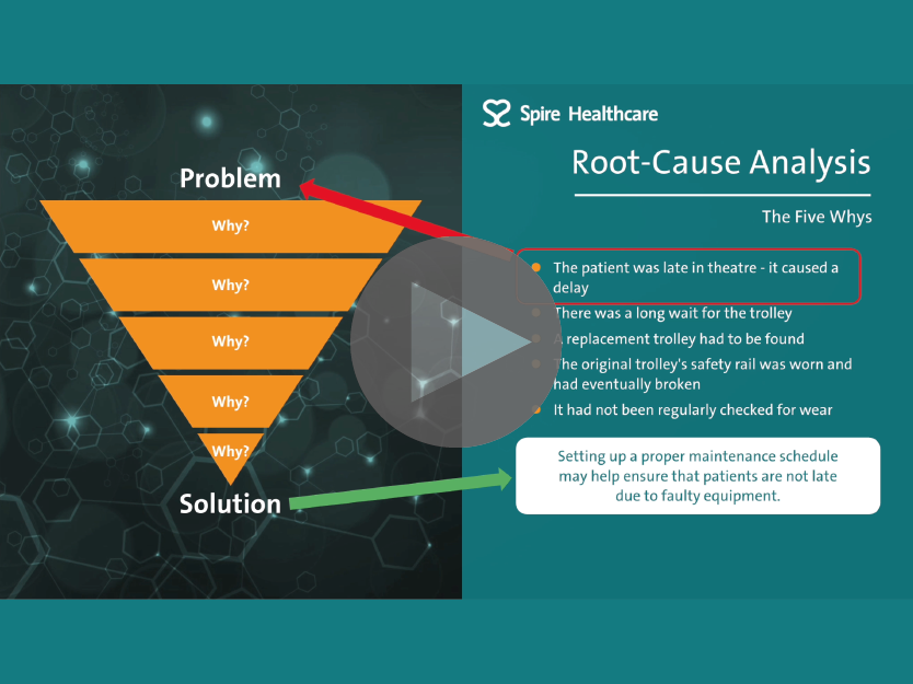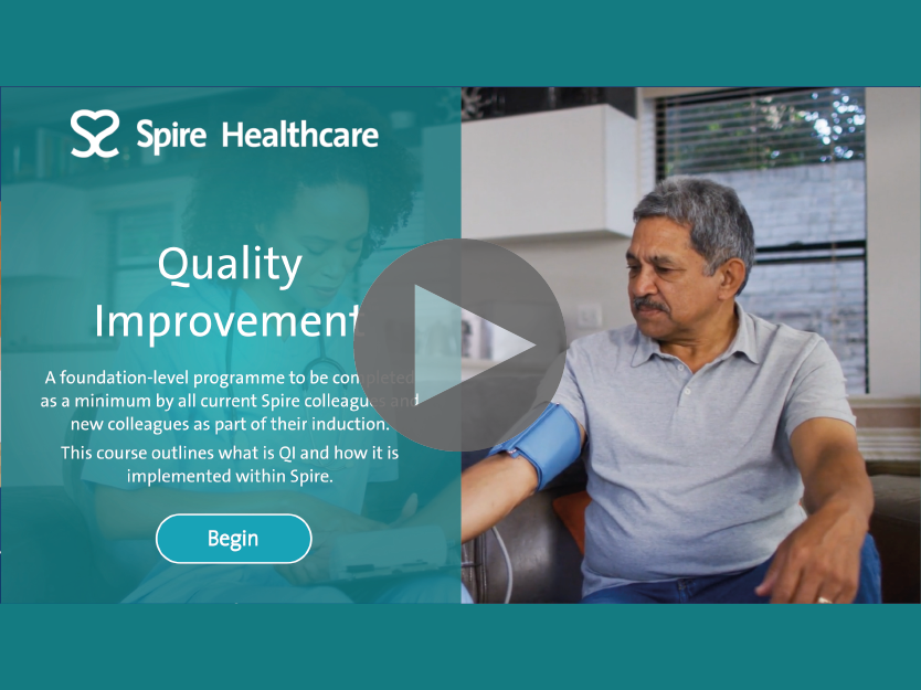 Spire Healthcare have a QI Academy where Quality Improvement is embedded into the organisation through different 'levels' of QI training. This interactive training course is the foundation for the QI Academy and outlines what QI is and how it is implemented at Spire Healthcare. The course utilises different learning styles to maintain user engagement. There are video sections that are presented in a 'documentary style', to make information memorable using storytelling techniques. There are also interactive elements for the learner to engage with on screen, animated explainers and quiz elements to check knowledge throughout. |